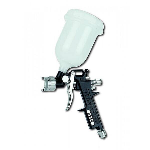Краскораспылитель GAV RECORD 2200 1.2 хорошо подходит для окрасочных работ по металлу, дереву, пластику и другим материалам Корпус изготовлен из алюминиевого сплава, что наделяет его высокой прочностью при малом весе, а верхнего бачка объёмом 750 мл хватит на довольно продолжительный период работы. Диаметр сопла составляет 1.2 мм.