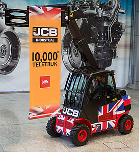 Британская компания JCB празднует производство десятитысячного погрузчика Teletruk, исполненного в классическом британском стиле – выпуская юбилейную машину в цветах национального флага.Машина, раскра...Компания: JCB ( J. C. Bamford Excavators Ltd )