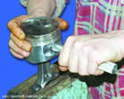 Стол разделочный со сбросом, размер 1200х600х900. Столешница изготовлена частично из полипропилена толщиной 20 мм. Под сбросом предусмотрено крепление для мешка, внизу расположена решетчатая полка. Ножки регулируемые по высоте.