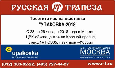 "Русская Трапеза" приглашает посетить стенд компании на выставке «УПАКОВКА 2018» 23-26.01