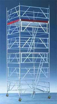 Расширенная рабочая платформа 9 м может быть смонтирована на большой высоте без расширения базовой версии. Стандартные рамы собираются поочередно со стабилизирующими рамами, рамы для подъема создают оптимальные условия для выхода в лесах. Лестницы с установленным углом наклона предоставляют легкие условия для подъема. Рабочая платформа 2,8х2,8м. Рабочая высота до 13,95м. Нагрузки до 1,5 кН/м2.